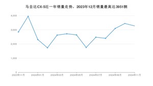 2024年11月,马自达CX-5销量为3275辆,同比增长14.87%,环比下降4.99%。2023年11月-2024年11月份,马自达CX-5销量为35287辆,同比增长122.43%。