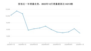 2024年11月,型格销量为4267辆,同比下降65.5%,环比下降32.97%。2023年11月-2024年11月份,型格销量为96550辆,同比下降18.23%。