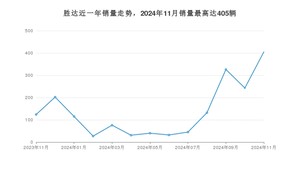 2024年11月,胜达销量为405辆,同比增长226.61%,环比增长66.67%。2023年11月-2024年11月份,胜达销量为1798辆,同比下降78.6%。