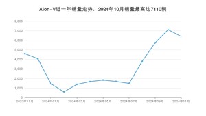 2024年11月,Aion V销量为6397辆,同比增长39.1%,环比下降10.03%。2023年11月-2024年11月份,Aion V销量为41732辆,同比增长111.68%。