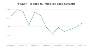 2024年11月,宝马iX3销量为2378辆,同比下降27.52%,环比增长22.77%。2023年11月-2024年11月份,宝马iX3销量为32516辆,同比下降12.85%。