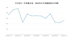 2024年11月,飞行家销量为258辆,同比下降30.27%,环比增长18.35%。2023年11月-2024年11月份,飞行家销量为4330辆,同比下降16.59%。