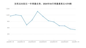 2024年11月,发现运动版销量为506辆,同比下降56.08%,环比下降6.47%。2023年11月-2024年11月份,发现运动版销量为11972辆,同比下降15.18%。
