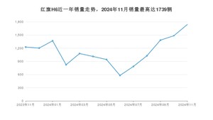 2024年11月,红旗H6销量为1739辆,同比增长41.84%,环比增长17.26%。2023年11月-2024年11月份,红旗H6销量为14647辆,同比增长79.61%。