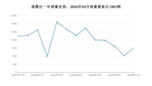2024年11月,威霆销量为904辆,同比下降32.54%,环比增长45.34%。2023年11月-2024年11月份,威霆销量为16217辆,同比下降9.69%。
