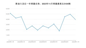 2024年11月,捷途大圣销量为3904辆,同比下降23.51%,环比下降21.39%。2023年11月-2024年11月份,捷途大圣销量为43930辆,同比增长0.44%。