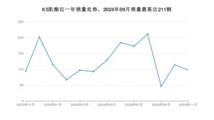 2024年11月,K5凯酷销量为98辆,同比增长3.16%,环比下降14.04%。2023年11月-2024年11月份,K5凯酷销量为1624辆,同比下降60.83%。