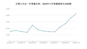 2024年11月,五菱之光销量为4282辆,同比增长185.09%,环比增长17.73%。2023年11月-2024年11月份,五菱之光销量为27601辆,同比下降1.14%。