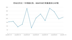 2024年11月,柯迪亚克销量为220辆,同比增长40.13%,环比增长12.82%。2023年11月-2024年11月份,柯迪亚克销量为2629辆,同比下降34.28%。