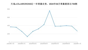 2024年11月,天逸 C5 AIRCROSS销量为263辆,同比下降28.73%,环比下降32.04%。2023年11月-2024年11月份,天逸 C5 AIRCROSS销量为4700辆,同比增长46.42%。