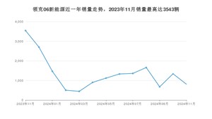 2024年11月,领克06新能源销量为808辆,同比下降77.19%,环比下降39.7%。2023年11月-2024年11月份,领克06新能源销量为17850辆,同比增长140.79%。