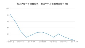 2024年11月,ID.6 X销量为2辆,同比下降99.75%,环比下降95.74%。2023年11月-2024年11月份,ID.6 X销量为3108辆,同比下降59.99%。
