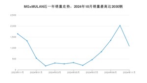 2024年11月,MG MULAN销量为1084辆,同比下降33.98%,环比下降46.6%。2023年11月-2024年11月份,MG MULAN销量为10534辆,同比下降7.47%。