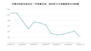 2024年11月,迈腾GTE插电混动销量为217辆,同比下降79.62%,环比下降48.82%。2023年11月-2024年11月份,迈腾GTE插电混动销量为7443辆,同比下降47.33%。