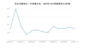 2024年11月,欧拉芭蕾猫销量为150辆,同比增长4.17%,环比下降9.64%。2023年11月-2024年11月份,欧拉芭蕾猫销量为2051辆,同比下降18.29%。