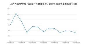 2024年11月,上汽大通MAXUS G90销量为45辆,同比下降51.09%,环比下降18.18%。2023年11月-2024年11月份,上汽大通MAXUS G90销量为970辆,同比下降54.95%。