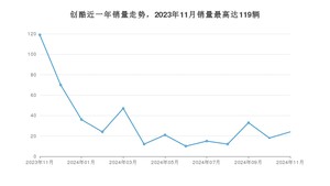 2024年11月,创酷销量为24辆,同比下降79.83%,环比增长33.33%。2023年11月-2024年11月份,创酷销量为441辆,同比下降91.95%。