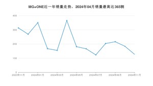 2024年11月,MG ONE销量为127辆,同比下降59.42%,环比下降30.98%。2023年11月-2024年11月份,MG ONE销量为2819辆,同比下降53.79%。