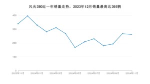 2024年11月,风光380销量为261辆,同比下降23.01%,环比下降2.25%。2023年11月-2024年11月份,风光380销量为3429辆,同比增长1.21%。
