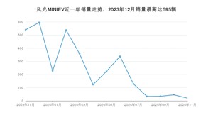 2024年11月,风光MINIEV销量为21辆,同比下降96.11%,环比下降54.35%。2023年11月-2024年11月份,风光MINIEV销量为3209辆,同比下降34.78%。