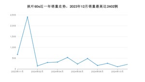 2024年11月,枫叶60s销量为214辆,同比下降68.11%,环比增长107.77%。2023年11月-2024年11月份,枫叶60s销量为5814辆,同比下降59.52%。