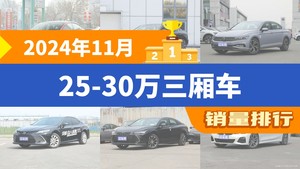 2024年11月25-30万三厢车销量排行榜,迈腾屈居第三,凯迪拉克CT5成最大黑马