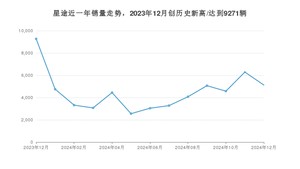在国内市场上,星途,在2024年12月的销量为5123辆,同比下降44.74%,环比下降18.54%。2023年12月-2024年12月份,星途累计销量为58857辆,较去年同期下降4.36%。