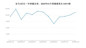 2024年12月,宝马3系销量为13375辆,同比增长17.37%,环比增长10.9%。2023年12月-2024年12月份,宝马3系销量为155698辆,同比增长7.35%。