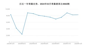 2024年12月,汉销量为8304辆,同比下降0.07%,环比增长0.65%。2023年12月-2024年12月份,汉销量为95739辆,同比下降44.49%。
