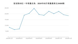 2024年12月,驱逐舰05销量为18329辆,同比增长120.78%,环比下降4.63%。2023年12月-2024年12月份,驱逐舰05销量为225534辆,同比增长145.38%。