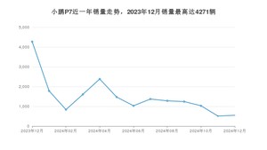 2024年12月,小鹏P7销量为549辆,同比下降87.15%,环比增长7.65%。2023年12月-2024年12月份,小鹏P7销量为19360辆,同比下降59.95%。