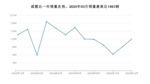2024年12月,威霆销量为1207辆,同比下降11.77%,环比增长33.52%。2023年12月-2024年12月份,威霆销量为16084辆,同比下降11.53%。