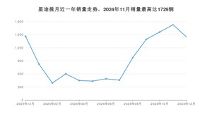 2024年12月,星途揽月销量为1449辆,同比下降1.02%,环比下降16.19%。2023年12月-2024年12月份,星途揽月销量为12220辆,同比增长18.8%。