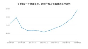 2024年12月,名爵5销量为7795辆,同比增长72.84%,环比增长36.16%。2023年12月-2024年12月份,名爵5销量为51743辆,同比下降2.69%。