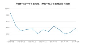 2024年12月,奔腾B70销量为3818辆,同比下降55.54%,环比增长53.33%。2023年12月-2024年12月份,奔腾B70销量为47815辆,同比增长2.28%。