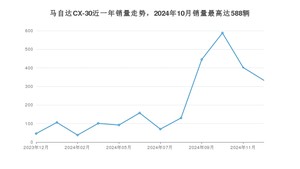 2024年12月,马自达CX-30销量为333辆,同比增长623.91%,环比下降17.16%。2023年12月-2024年12月份,马自达CX-30销量为2508辆,同比下降24.75%。