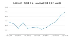 2024年12月,传祺GS3销量为10023辆,同比增长82.37%,环比增长20.58%。2023年12月-2024年12月份,传祺GS3销量为61286辆,同比增长11.5%。