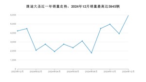 2024年12月,捷途大圣销量为5945辆,同比增长40.61%,环比增长52.28%。2023年12月-2024年12月份,捷途大圣销量为44771辆,同比下降0.84%。