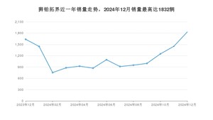 2024年12月,狮铂拓界销量为1832辆,同比增长11.98%,环比增长26.34%。2023年12月-2024年12月份,狮铂拓界销量为14986辆,同比增长28.03%。