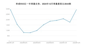 2024年12月,荣威RX5销量为2944辆,同比增长0.86%,环比增长66.42%。2023年12月-2024年12月份,荣威RX5销量为19183辆,同比下降55.35%。