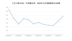 2024年12月,上汽大通G10销量为481辆,同比下降25.54%,环比增长37.43%。2023年12月-2024年12月份,上汽大通G10销量为4280辆,同比下降58.08%。