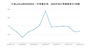 2024年12月,天逸 C5 AIRCROSS销量为276辆,同比下降23.12%,环比增长4.94%。2023年12月-2024年12月份,天逸 C5 AIRCROSS销量为4607辆,同比增长38.18%。