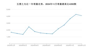 2024年12月,五菱之光销量为4099辆,同比增长145.6%,环比下降4.27%。2023年12月-2024年12月份,五菱之光销量为30198辆,同比增长10.05%。