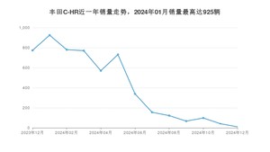 2024年12月,丰田C-HR销量为10辆,同比下降98.71%,环比下降75.61%。2023年12月-2024年12月份,丰田C-HR销量为5381辆,同比下降61.28%。