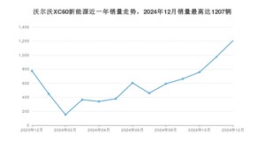 2024年12月,沃尔沃XC60新能源销量为1207辆,同比增长55.54%,环比增长23.92%。2023年12月-2024年12月份,沃尔沃XC60新能源销量为7714辆,同比增长18.17%。