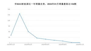 2024年12月,宋MAX新能源销量为2辆,同比下降95.12%,2023年12月-2024年12月份,宋MAX新能源销量为332辆,同比下降93.01%。