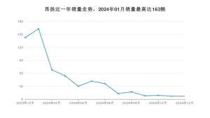 2024年12月,昂扬销量为7辆,同比下降95.1%,环比持平。2023年12月-2024年12月份,昂扬销量为597辆,同比下降87.14%。
