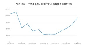 2024年12月,哈弗H6销量为18437辆,同比下降13.97%,环比增长41.49%。2023年12月-2024年12月份,哈弗H6销量为154128辆,同比下降33.39%。