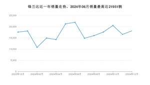 2024年12月,锋兰达销量为18145辆,同比增长3.16%,环比增长9.75%。2023年12月-2024年12月份,锋兰达销量为222436辆,同比增长13.05%。