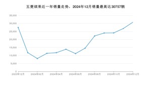 2024年12月,五菱缤果销量为30757辆,同比增长12.01%,环比增长14.73%。2023年12月-2024年12月份,五菱缤果销量为237832辆,同比增长41.77%。